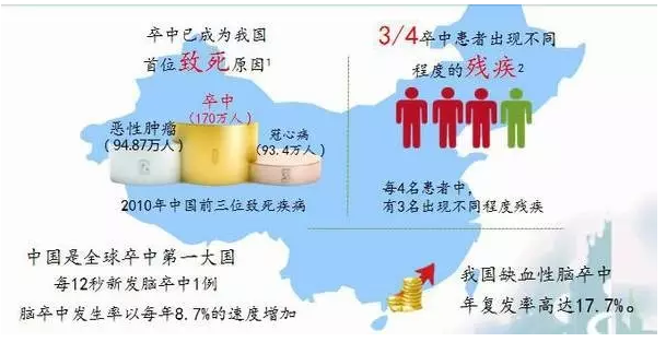 2017年6月,《中國心血管病報告2016》發(fā)布,報告概要刊登于中國循環(huán)雜志。國家衛生服務(wù)調查結果顯示,1993~2013年期間,我國腦血管病患病率整體呈上升趨勢,以前是城市高于農村,但目前已經(jīng)發(fā)生逆轉。2013年的第五次調查顯示,城市腦血管病患病率(12.1‰)有所下降,農村(12.3‰)仍呈明顯的上升。腦卒中現患人數約1300萬(wàn),腦卒中給中國造成的經(jīng)濟負擔每年高達400億元。